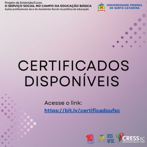 Prezadas/os participantes concluintes do Curso de Extensão “O SERVIÇO SOCIAL NO CAMPO DA EDUCAÇÃO BÁSICA: ações profissionais do Assistente Social na política de educação”,